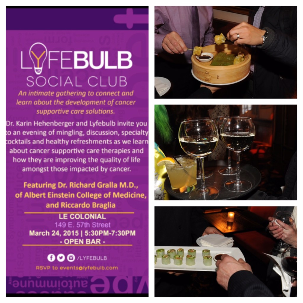 Lyfebulb recently held a Cancer Supportive Care event on March 24, 2015 at popular venue, Le Colonial, in NYC. Cancer therapies have improved vastly over the past few years, but they still cause much damage to the body while they treat the actual disease. There is a big need for new therapies addressing those side effects and some of the general symptoms caused by the chronicity of the disease. At our event, we learned more about cancer supportive care therapies and how they are improving the quality of life amongst those impacted by cancer. Speakers included a thought leader within the space, Dr. Richard Gralla of Albert Einstein College of Medicine, and two patients sharing their experience. A great night with many wonderful connections made.